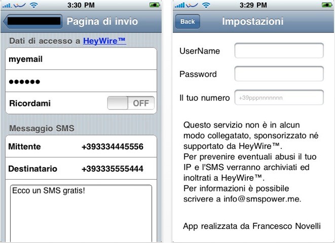 Inoltre possibile invio sms gratis dal web, previa registrazione.