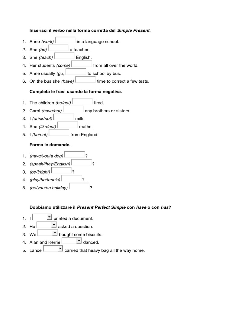 Solo tienes que completar las frases propuestas con la forma adecuada de presente simple o continuo del verbo entre paréntesis. If you are not sure what present simple and continuous means, we suggest covering individual topics first. Come tutti voi ho dovuto ragionare, comprendere, consumare penne ed esercizi affinché l'inglese diventasse parte di me e mi sentissi davvero competente per cominciare ad ti darò alcune frasi con dei buchi e vorrei che coniugassi il verbo tra parentesi al present simple o al present continuous. Practise the difference between present continuous and present simple in various online exercises. Present perfect or present progressive, present perfect or simple past and present perfect or present perfect continuous + answer key level: